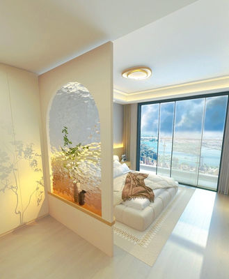Subtelna, ale fascynująca tekstura fal wodnych ścianek z hartowanego szkła przynosi poczucie spokoju i elegancji do sypialni.tworzenie spokojnego środowiska sprzyjającego relaksowi i odmładzaniu.